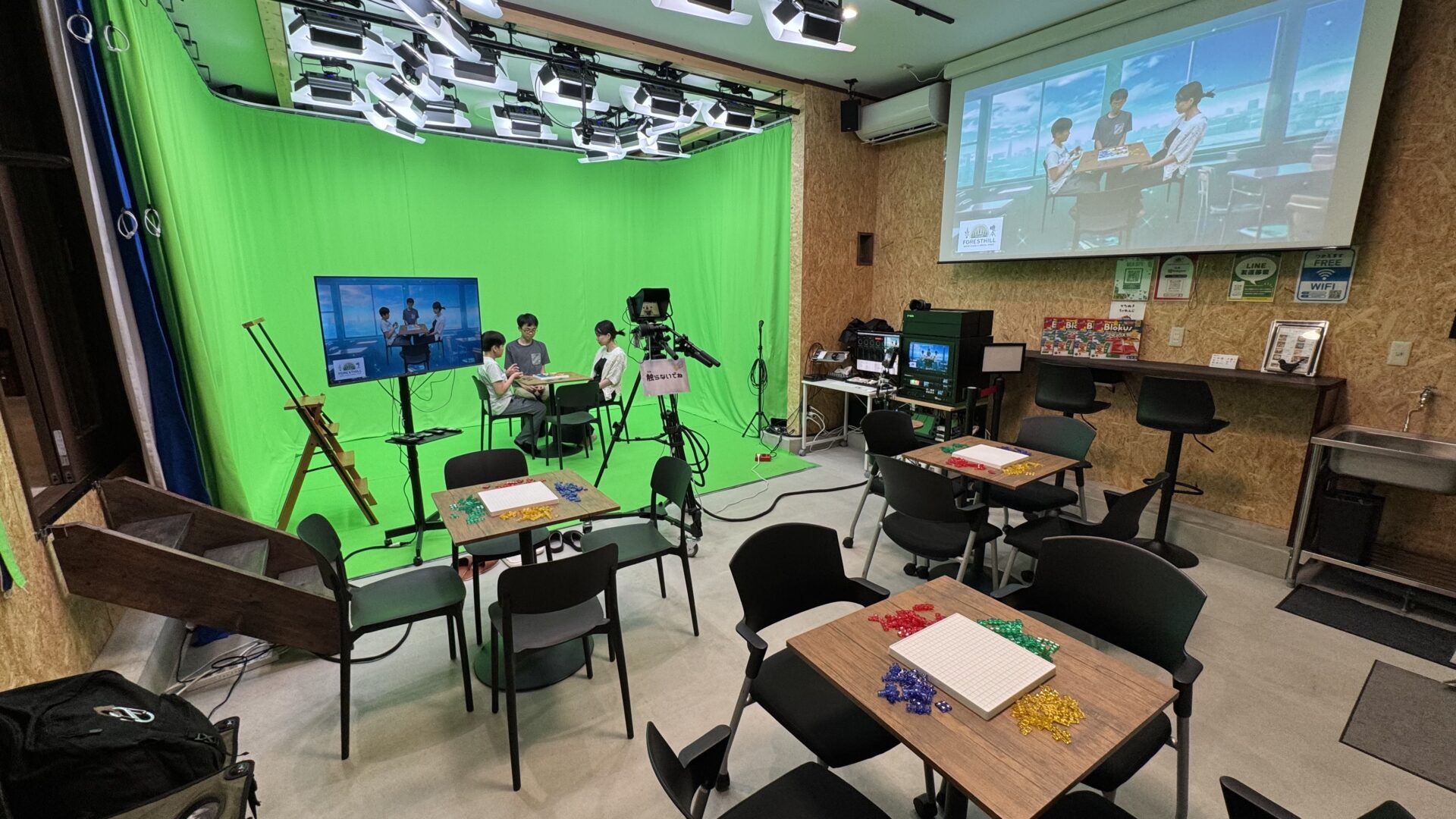 プロ仕様のクロマキースペースとカフェ併設の環境で、快適に映像撮影が可能です。